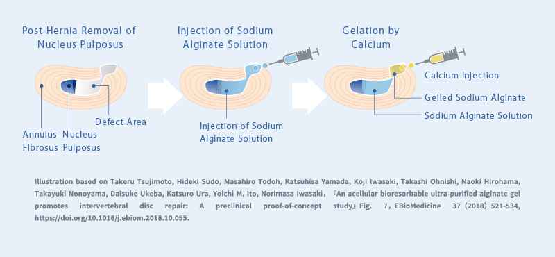 [References] Katsuhisa Yamada, Takahiko Hyakumachi, Terufumi Kokabu, Kenichiro Maeda, Toshiyuki Isoe, Khin Khin Tha, Yoichi M. Ito, Takashi Ohnishi, Tsutomu Endo, Daisuke Ukeba, Hiroyuki Tachi, Yuichiro Abe, Yoko Ishikawa, Nozomi Yokota, Takashi Miyakoshi, Osamu Sugita, Norihiro Sato, Norimasa Iwasaki & Hideki Sudo, Acellular, bioresorbable, ultra-purified alginate gel implantation for intervertebral disc herniation: Phase 1/2, open-label, non-randomized clinical trials. Nat. Commun. 16, 4285 (2025). doi: 10.1038/s41467-025-59715-0